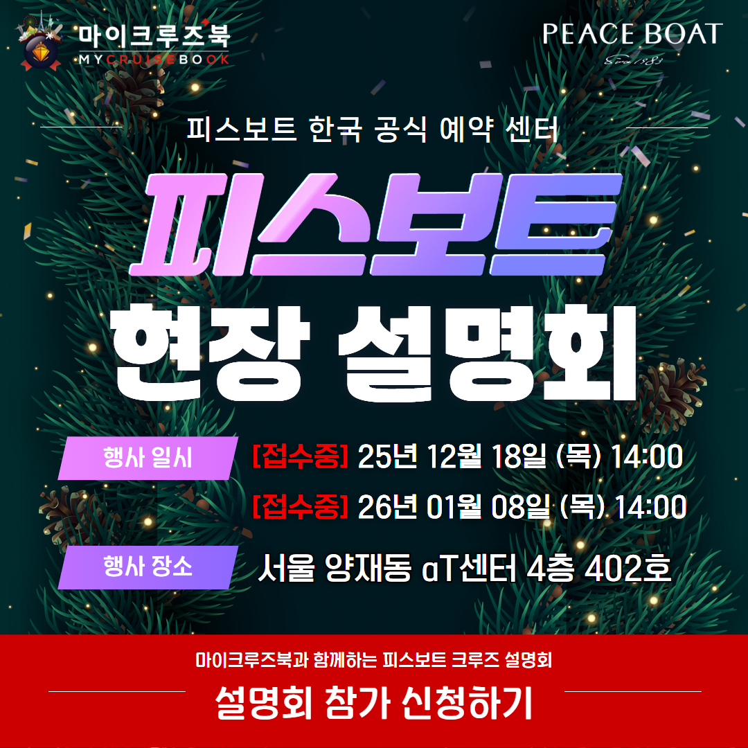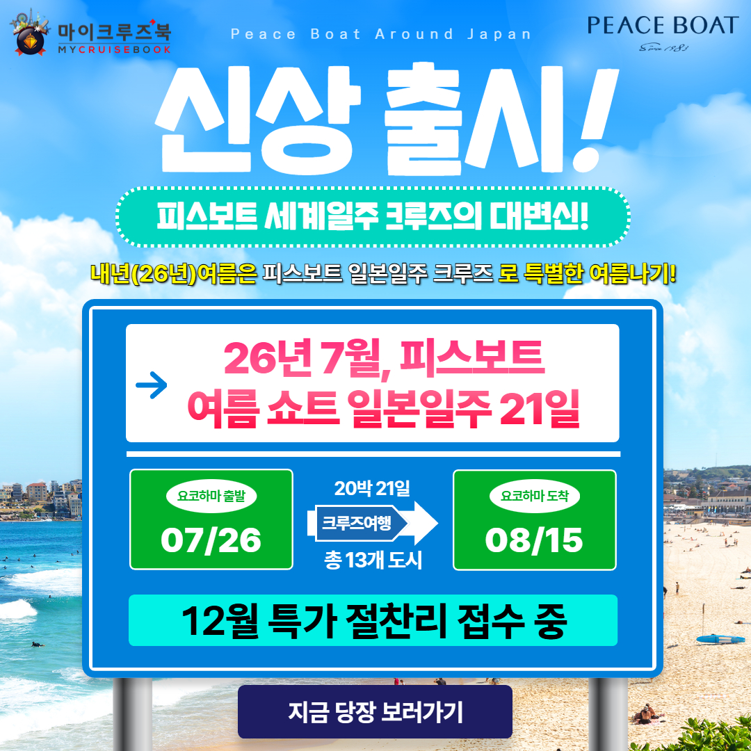 25년 8월, 마이크루즈북 × 피스보트 전담 팀121항차 단체 이동 후기>> 더보기