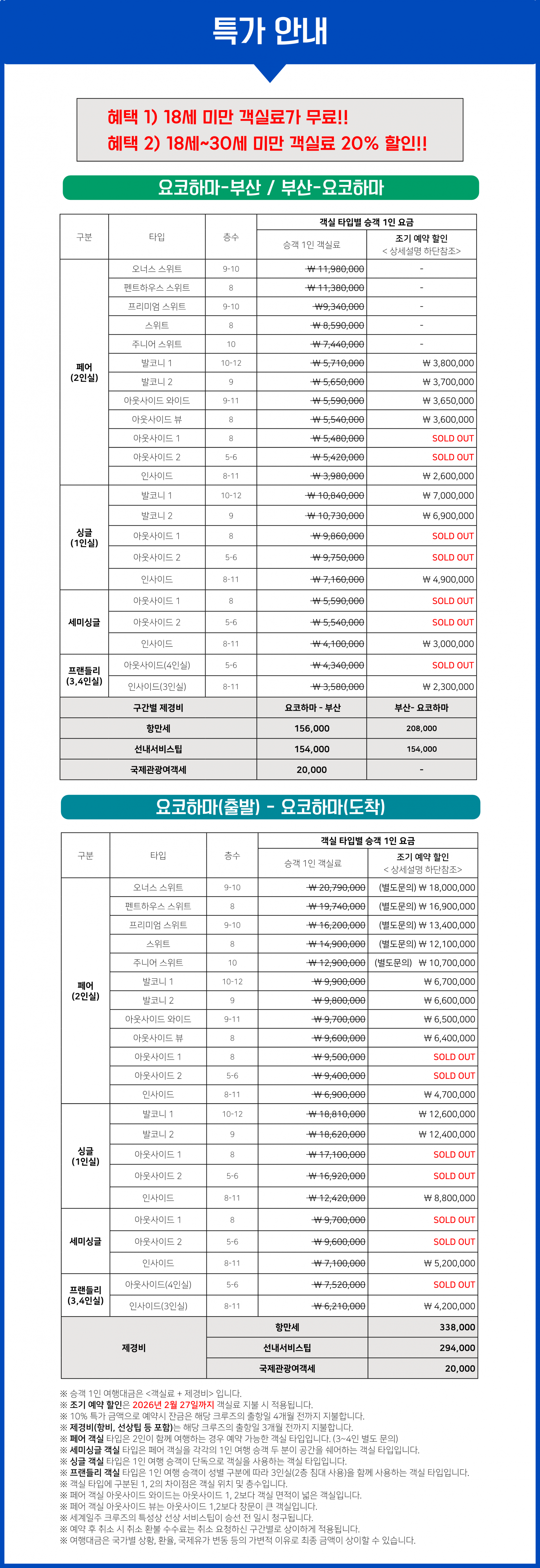 - 주요 기항지 : 요코하마 / 히로시마(일본) / 고베(일본)